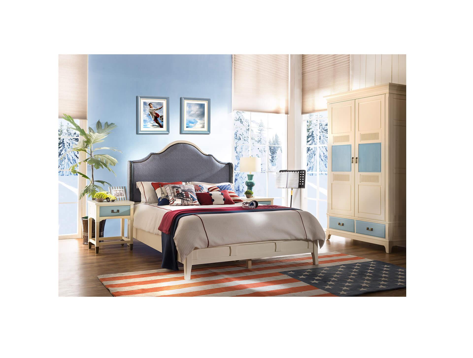 CTG-107床头柜白+蓝